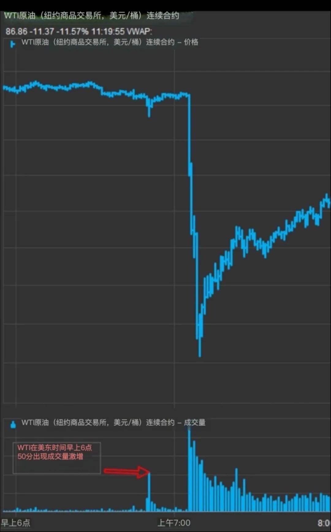 然而,当市场骤然翻转后,有人警告又出现了内幕交易。周一纽约时间上午6点49分至6点50分之间,约有6200份布伦特原油和西德克萨斯中质原油(WTI)期货合约易手,仅比特朗普发表声明早了15分钟。